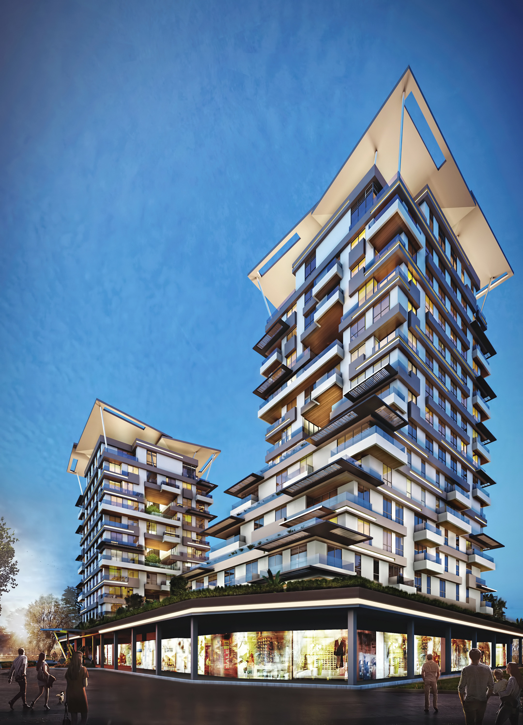 The project is built on a land area of 3200 square meters, 12% of which is dedicated to green spaces. It has two blocks consisting of 169 residential units.
