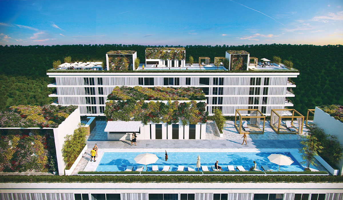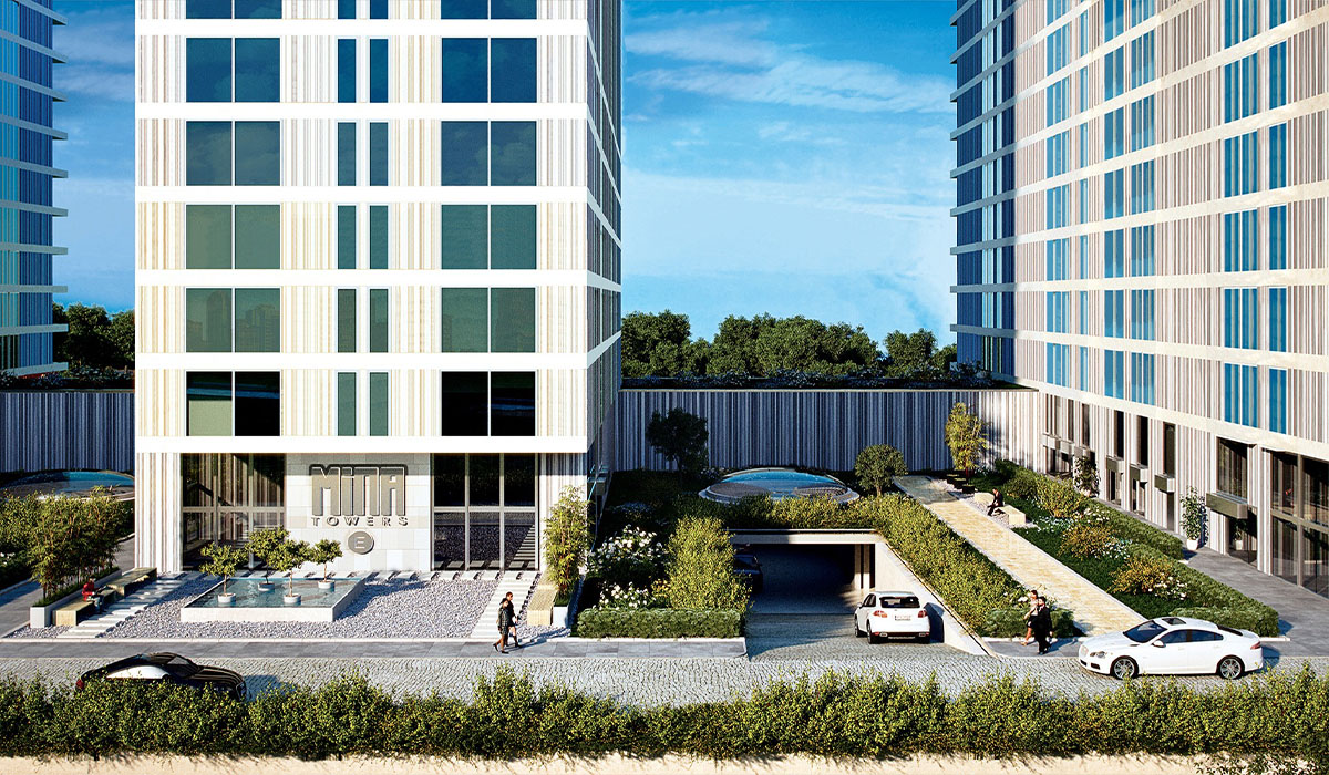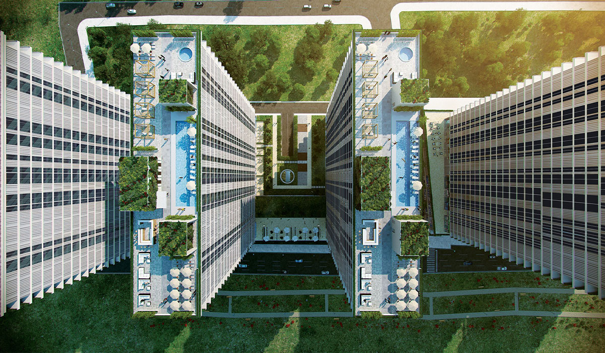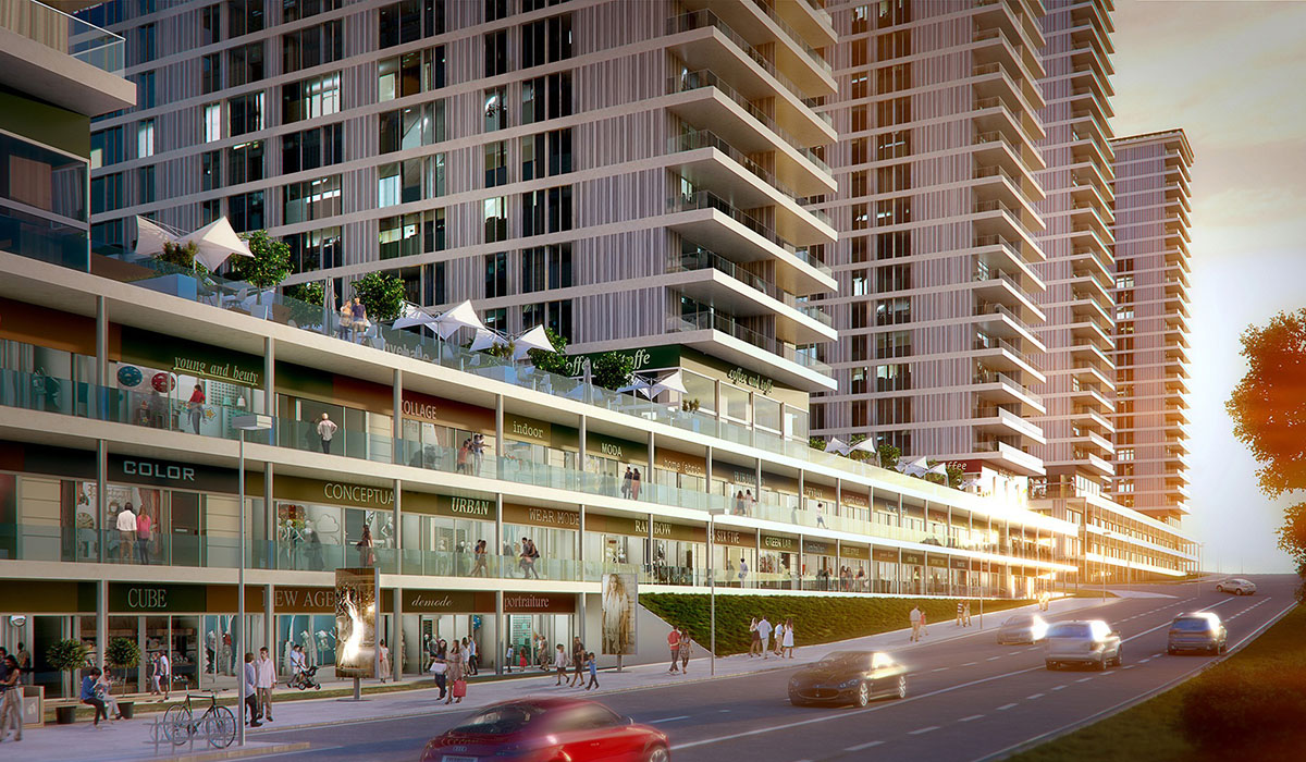 The Project consists of 1500 residential units, 24 offices, 95 commercial shops located on the ground, and the 20 lower floors of the towers.